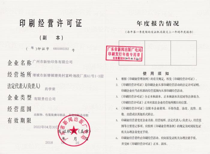 印刷經(jīng)營(yíng)許可證證書