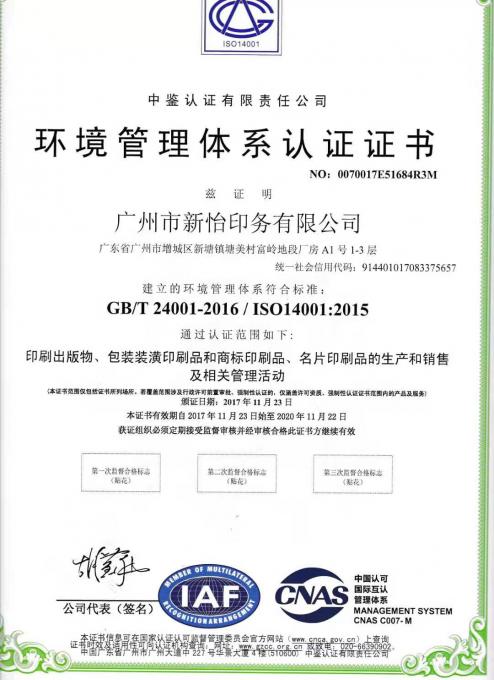 環(huán)境管理體系認(rèn)證證書